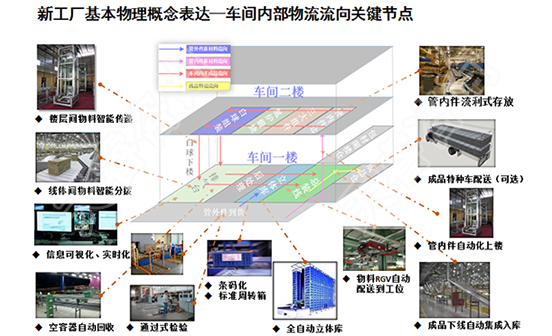 原美的廚房電器事業(yè)部磁控管老工廠成品、原材料、人員出入都在一個大門,人流物流混合,沒有分流,大物流沒有形成閉環(huán);管內(nèi)件倉庫卸貨通道狹窄,車輛出入困難,降低運(yùn)作效率;功能區(qū)域之間物流路徑迂回。美的廚房電器事業(yè)部決定新建一個磁控管新工廠,達(dá)到實(shí)物—信息實(shí)時對接、智能化+少人化、制造工廠物流中心化,最終實(shí)現(xiàn)智能化。